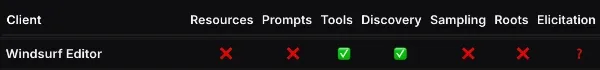 Yet it wasn’t until my third iteration of the server that I started to discover the problem. Even though Resources were a part of the protocol, no clients were currently supporting it. At the time, neither Windsurf nor Claude Desktop supported the Resource feature of the protocol (though Claude Desktop does now).